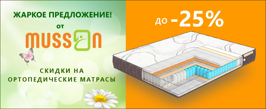 Скидки до -25% на широкий ассортимент ортопедических матрасов тм Musson.