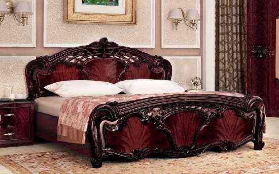 - американская классика – предпочитает только массив натурального дерева, который покрывается лаком высокого качества. Иногда, кровати декорируют патиной в цвете золота или серебра, иногда тканевыми вставками высокого качества.