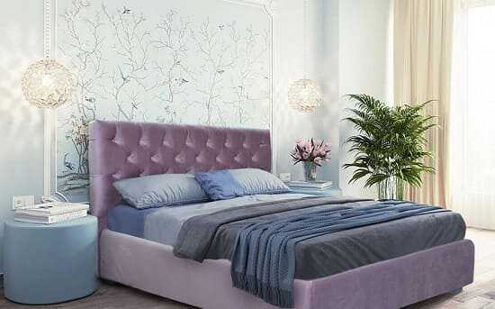 - Кровать с мягким изголовьем «Борно» - это совершенно новый взгляд на современную классику. Кровать нежного лавандового цвета с лаконичными формами, что не совсем присуще классике, однако ее стеганное изголовье в стиле «капитоне» с пуговицами, в корне меняет дело, делая модель центром спальни в классическом стиле: