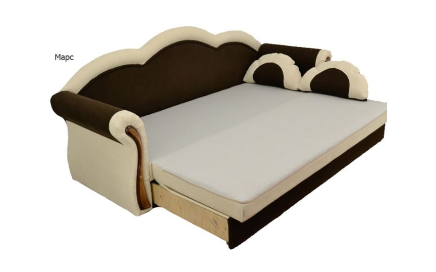 Выкатной механизм трансформации - простой и надежный механизм. Раскладка дивана не требует особых усилий и не займет более 3-х секунд.Спальное место состоит из 2-х сегментов, в собранном состоянии сегменты находятся в корпусе дивана.