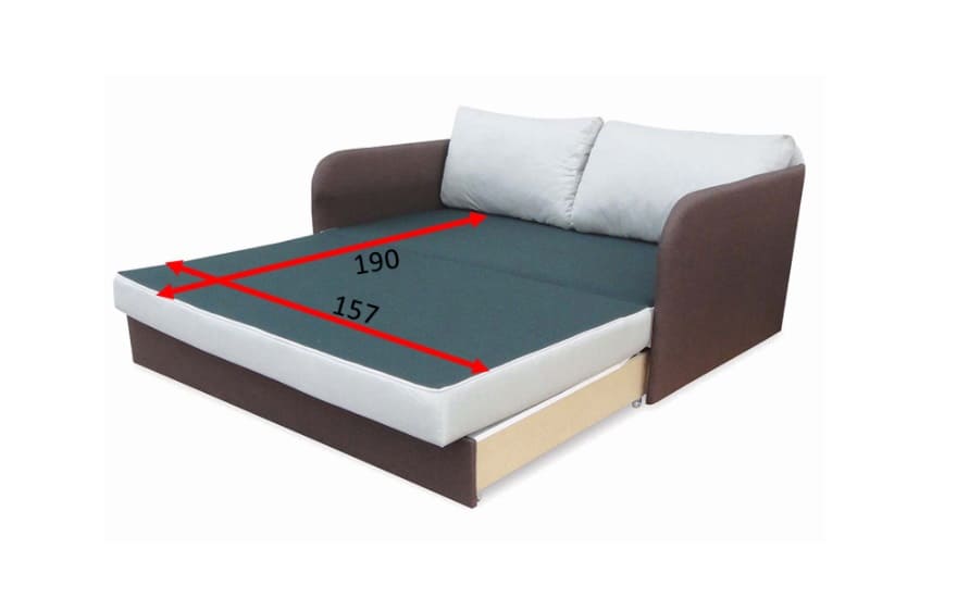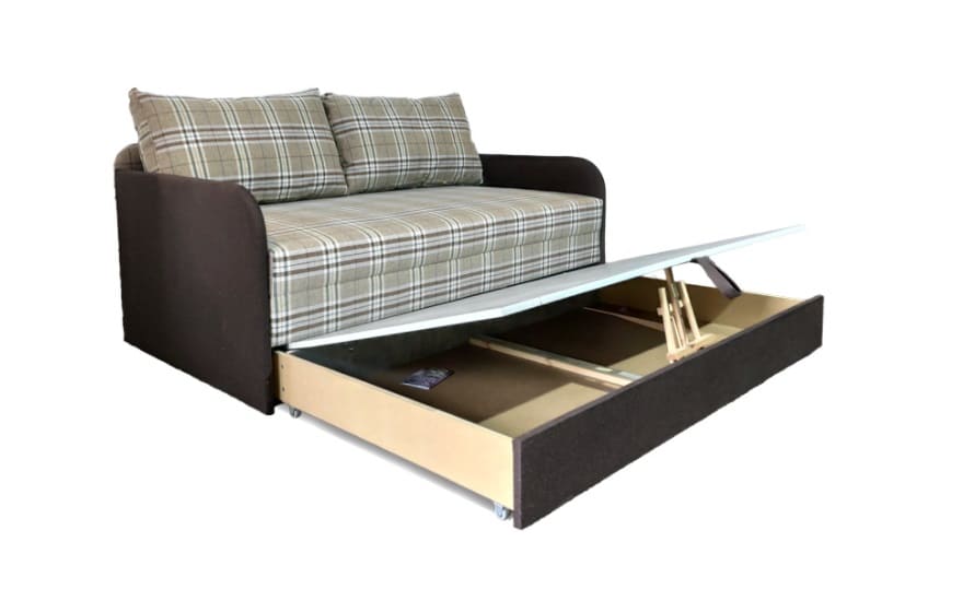 Выкатной механизм трансформации - простой и надежный механизм. Раскладка дивана не требует особых усилий и не займет более 3-х секунд.Спальное место состоит из 2-х сегментов, в собранном состоянии сегменты находятся в корпусе дивана.