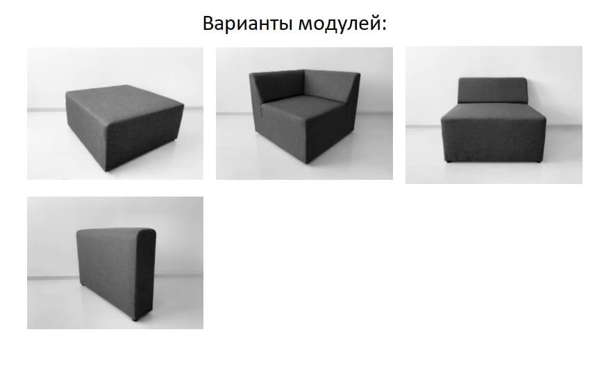 *Обратите внимание, что диван "Олаф" представлен модульной системой. Размер и компановка выбирается клиентом. Возможные варианты модулей представлены в доп.фото. Цена на сайте указана за диван с модулями: прямой+угол+подлокотник+пуф