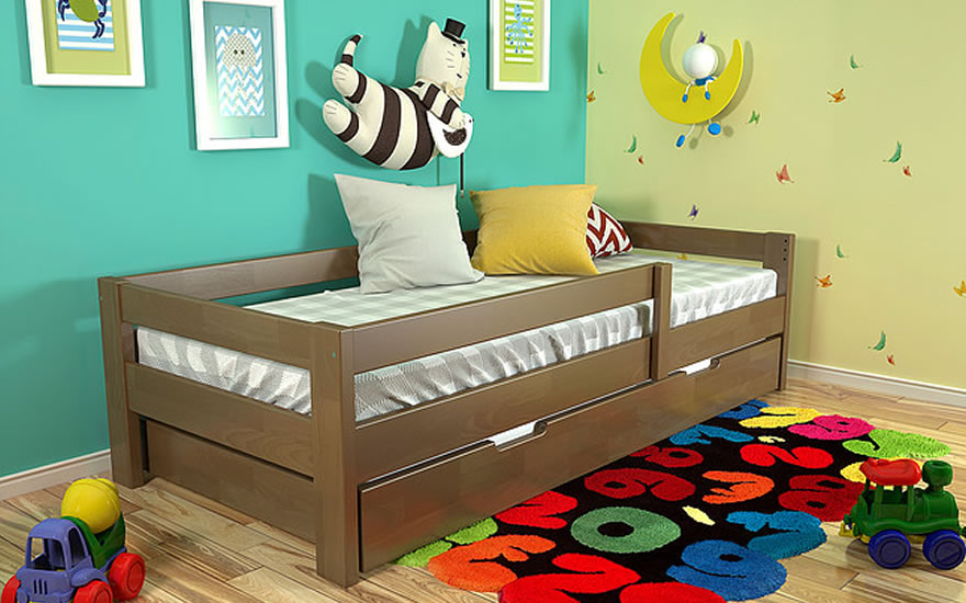 Выбрали темный оттенок кровати. С выбором явно не ошиблись. Сын доволен. Говорит, что все нравится. Уже забил ящики внизу своими игрушками. Прочная, надежная кровать. Для детей - самое то.