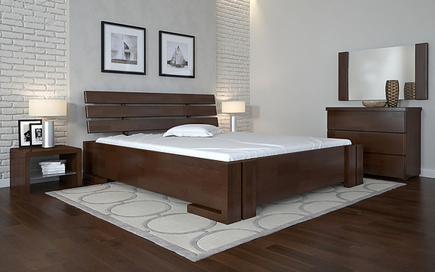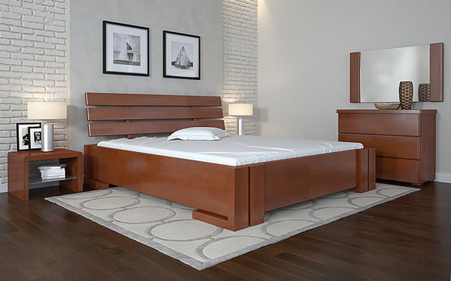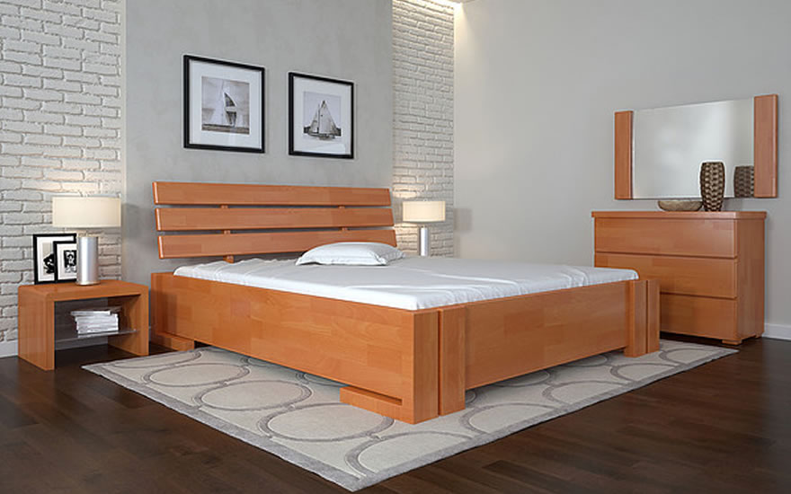 Кровать изготовлена из качественных экологически чистых материалов - букового щита, покрыта гипоаллергенным итальянским лаком, позволяющим сохранить идеальный вид изделия надолго.