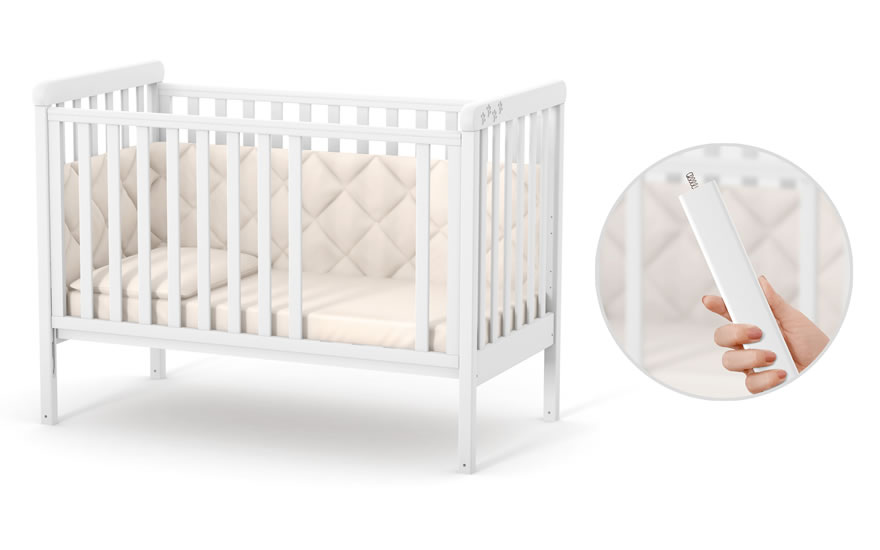 • Наличие съёмных спиц: когда ребенок подрастет - сможет самостоятельно покидать и возвращаться в кроватку через проём, где вытягиваются спицы.