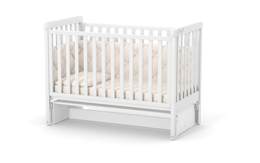 • Данная кроватка без системы укачивания. Механизм укачивания: продольный маятник или продольный маятник с ящиком приобретаются отдельно.