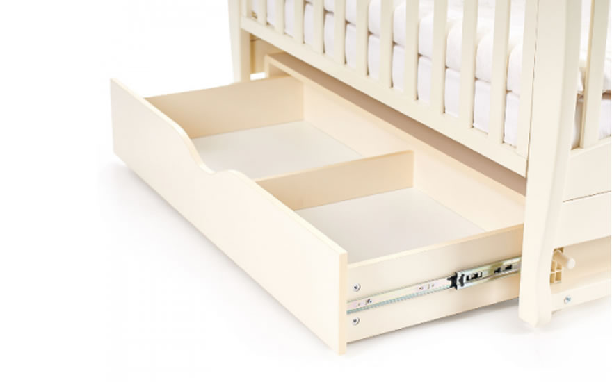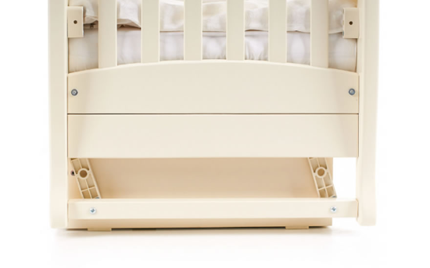 Механизм укачивания (маятник поперечный) с ящиком для белья входят в базовый комплект кроватки.