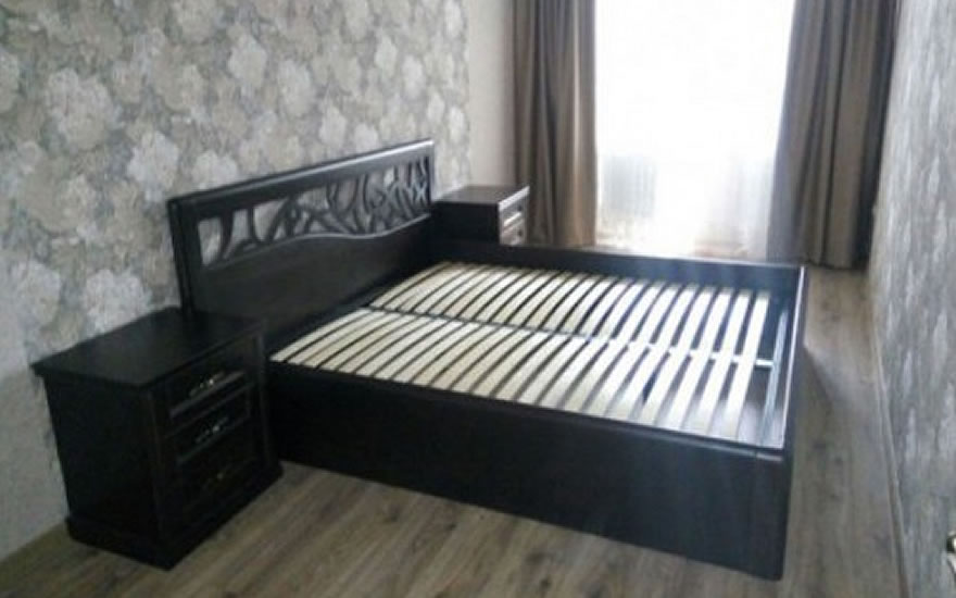 • Материалы: каркас – спинка дерево с элементами фанеры, ножки дерево, царги ДСП шпонированное, основа под матрас - металлическая рама с буковыми ламелями