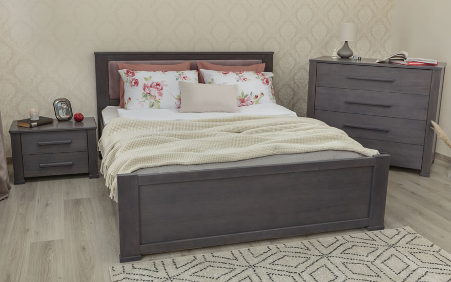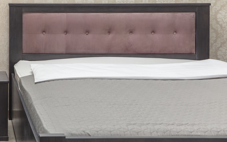Изголовье и изножье кровати выполнены из щита бука, мягкая вставка в изголовье из кожзама или ткани, на выбор покупателя.