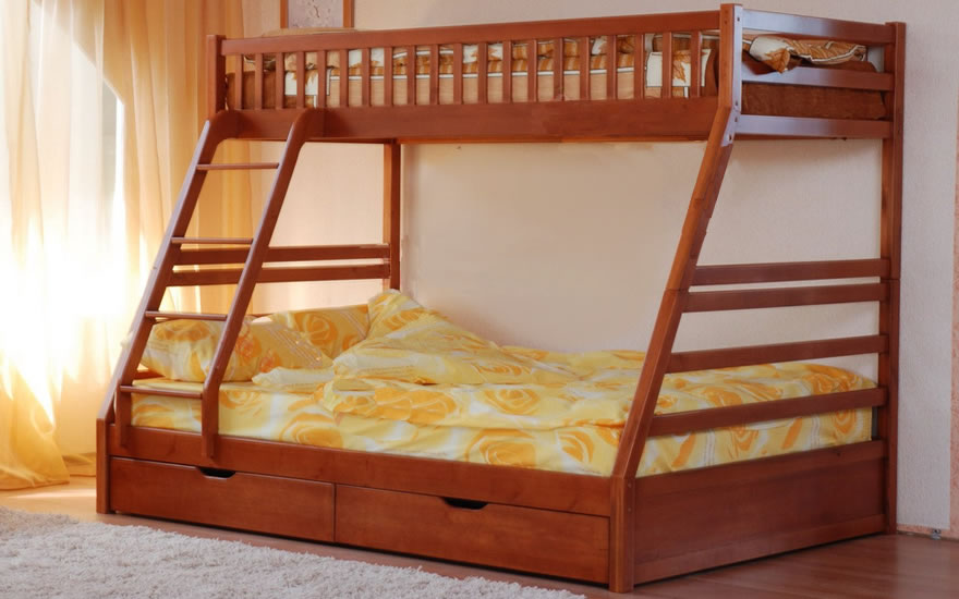 • Двухъярусная кровать "Юлия" - кровать-трансформер, которая легко разбирается на две отдельные кровати - односпальную (90 см) и полуторную (140 см).