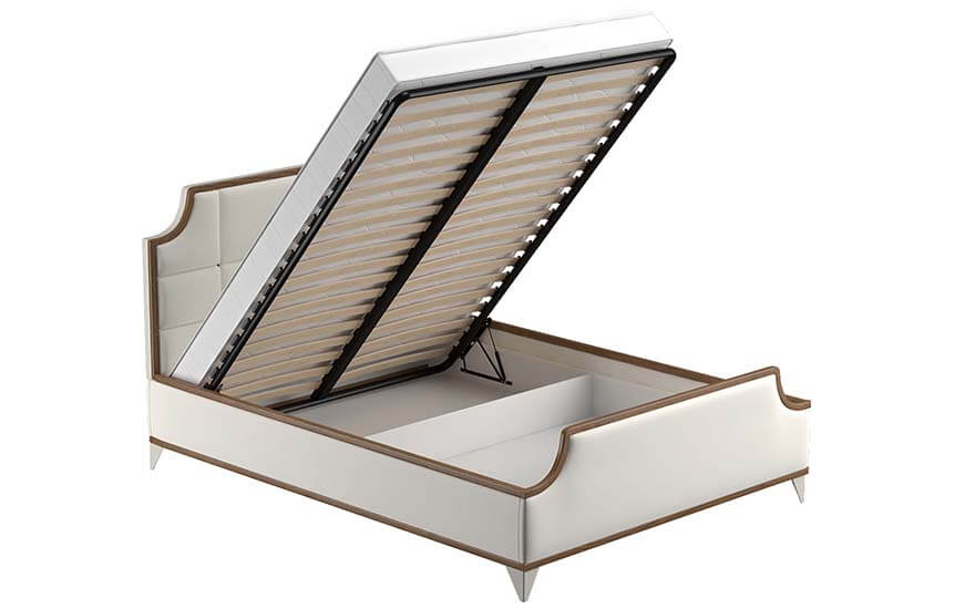 Благодаря металлическому каркасу с усиленными гнутоклееными ламелями, достигается ортопедический эффект, который дает возможность полноценного отдыха и анатомически правильного положения тела, без пережимов сосудов и смещений позвонков. Сон на такой кровати гарантирует полноценное восстановление сил.