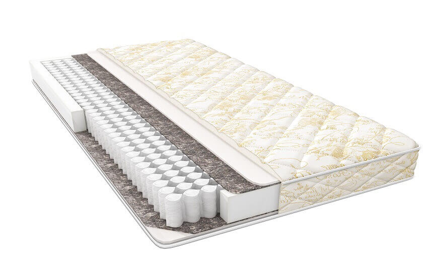 Блок независимых пружин повышенной надежности обеспечивает оптимальное распределение нагрузки массы тела по матрасу. Каждая пружина находится в отдельном пакете, таким образом создаются условия для оптимальной работы пружины при нагрузке, тем самым обеспечивая правильное положение тела во время сна, анатомически и ортопедически правильное.