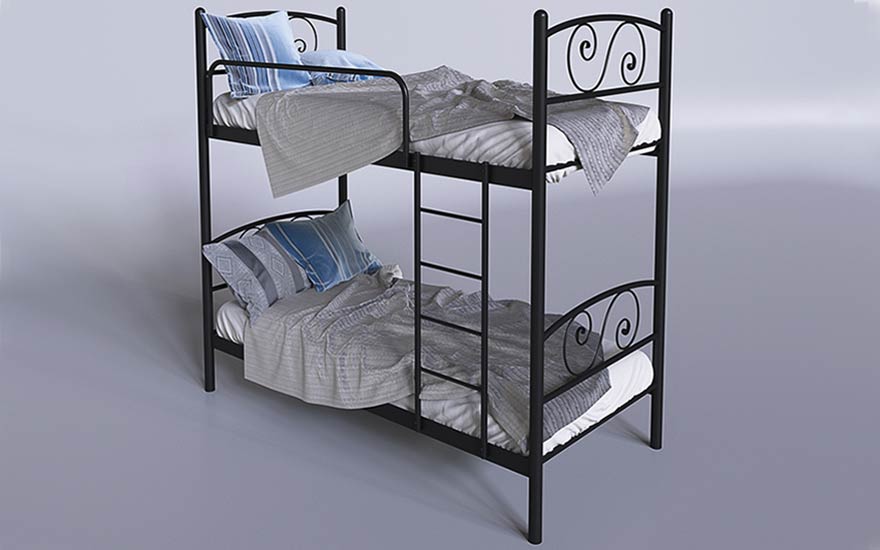 • Двухъярусная  модель Виола очень  утонченная, нежная и комфортная. На втором  ярусе есть ограждение, предотвращающее падение во время сна, Для удобства подъема на второй ярус модель оснащена лестницой которая исключает травматизм во время подъема. Кровать  идеально подходит для классического интерьера в спальни девочек.