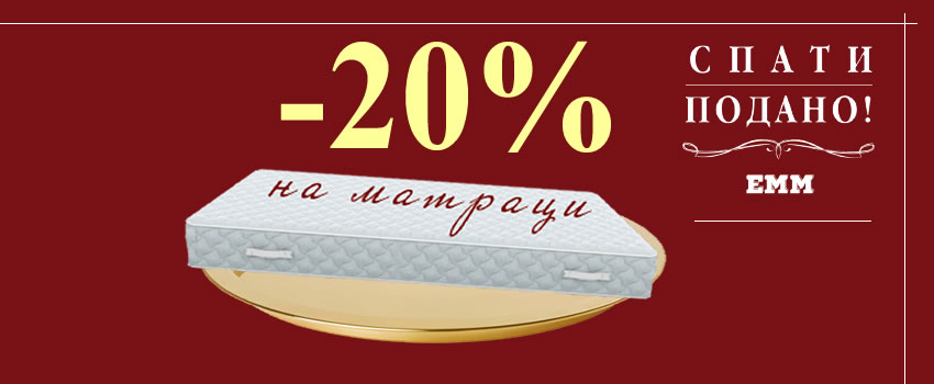 Скидка -20% на ряд популярных матрасов от ТМ ЕММ из коллекций Sleep&Fly, Sleep&Fly Organic, Take and Go, Evolution и многих других.
