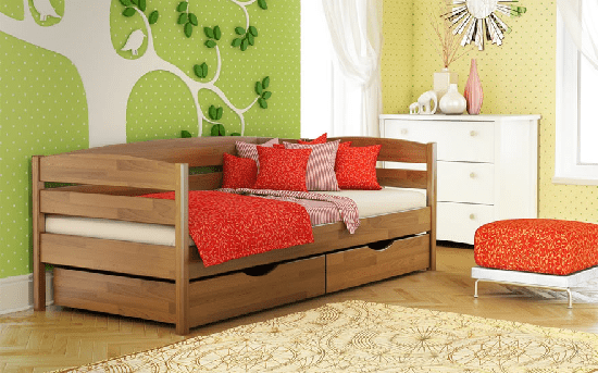 Звичайно, найкращим варіантом буде ліжко з масиву натурального дерева, будь-то дуб, бук, вільха або сосна. Така модель буде виглядати дуже ефектно в будь-якій дитячій кімнаті, підійде як для хлопчика, так і для дівчинки, матеріал абсолютно гіпоалергенний, відрізняється високим терміном служби.