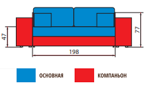 Диван оббитий м'якою, приємною на дотик тканиною. Є можливість комбінації тканин і кольору: