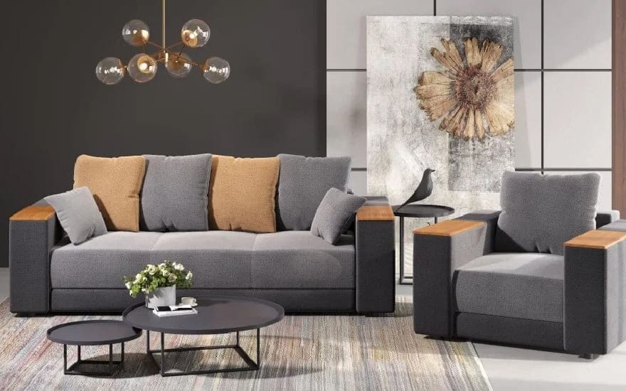Каркас дивана виготовлений з масиву натурального дерева, що гарантує моделі зносостійкість і довговічність.