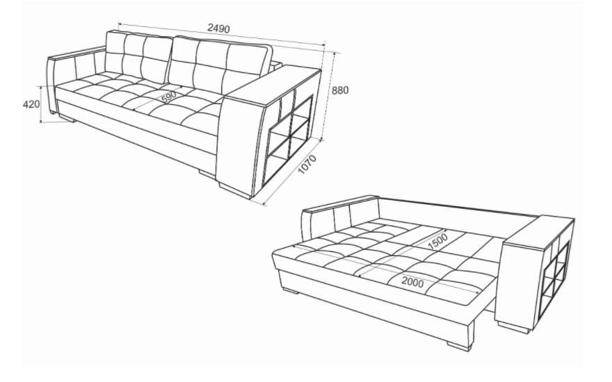 У конструкції використовується крокуючий принцип: при трансформації передня подушка рухається вперед, а задня автоматично піднімається. Спинка дивана залишається нерухомою, як узголів'я повноцінного ліжка. Просцес розкладки не займе більше 3-х секунд.