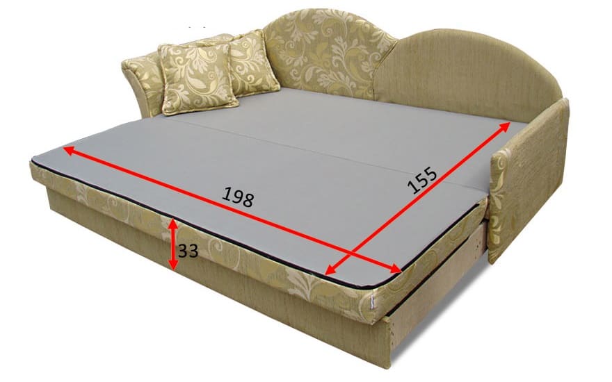 Спальне місце складається з 2-х сегментів, в зібраному стані сегменти знаходяться в корпусі дивана.