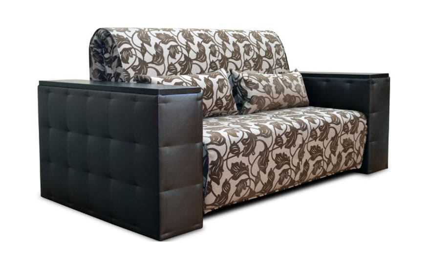 Оригінальності дивану додають дизайнерські підлокітники з об'ємною простежкой з екокожі. На підлокітниках передбачені накладки з ЛДСП. Усередині підлокітників містка ніша для білизни.
