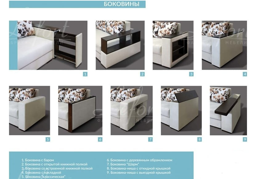 Зверніть увагу, що купити диван "Рів'єра" можна з різною модифікацією підлокітників (див.дод.фото).