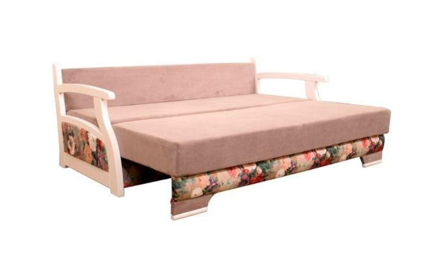 Каркас дивана виконаний в поєднанні твердих порід дерева і фанери, що гарантує зносостійкість і довговічність. Фігурні підлокітники з масиву натурального дерева.