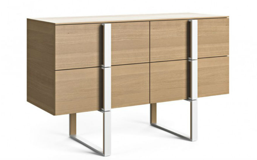 Плавні, прямі лінії даної моделі візуально збільшують простір, привносячи нотку свіжості навіть в умовах обмеженої площі. Завдяки використанню шпону, комод має неймовірно приємну на дотик поверхню. Фактура натурального дерева надає виробу витончений зовнішній вигляд. Металеві ніжки наділяють комод від виробника вишуканою простотою і лаконічністю.