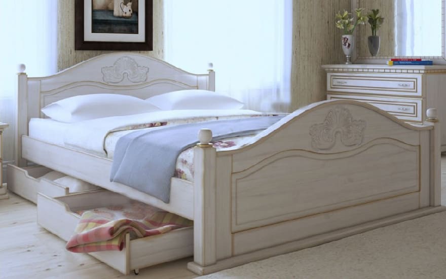 ВАЖЛИВО! Ціна на сайті вказана за ліжко в стандартних відтінках (К2, К3, К4, К5) без патинування. Біле ліжко з патинуванням (як на основному фото) за додаткову плату!