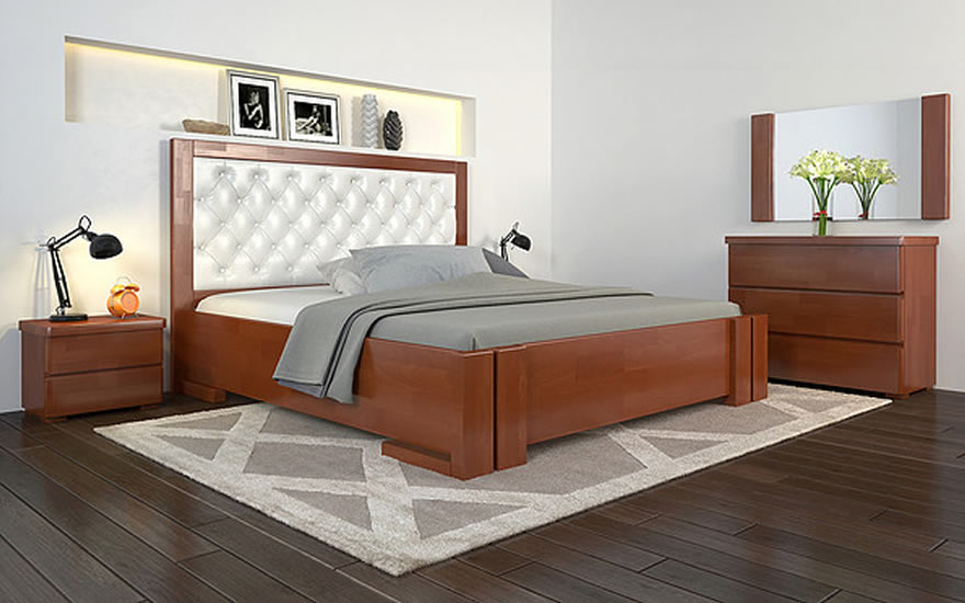 Фабрика виробник ліжок із дерева з мякою спинкою Woodsoft