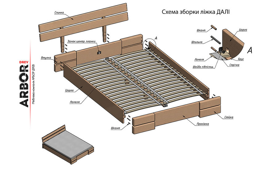 Фабрика виробник ліжок із дерева з мякою спинкою Woodsoft