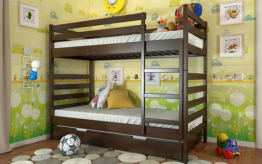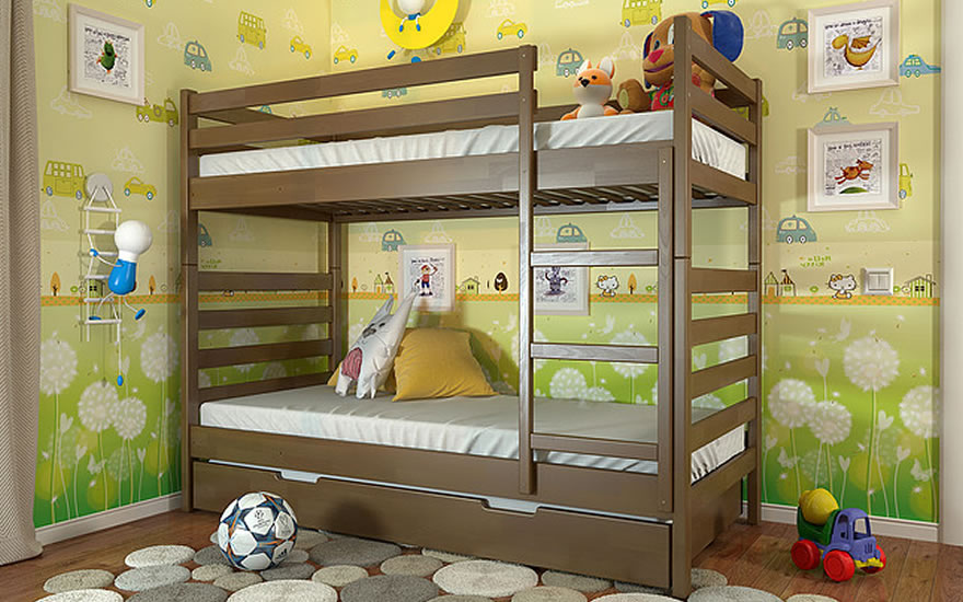 Ліжко "Ріо" обладнане міцною і надійною драбиною, що дозволяє безпечно підніматися на другий ярус ліжка.