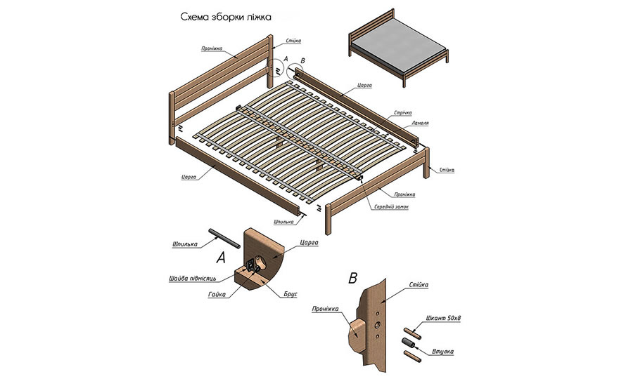 Ліжко укомлектоване ламелями товщиною 8 мм з кроком 38 мм.