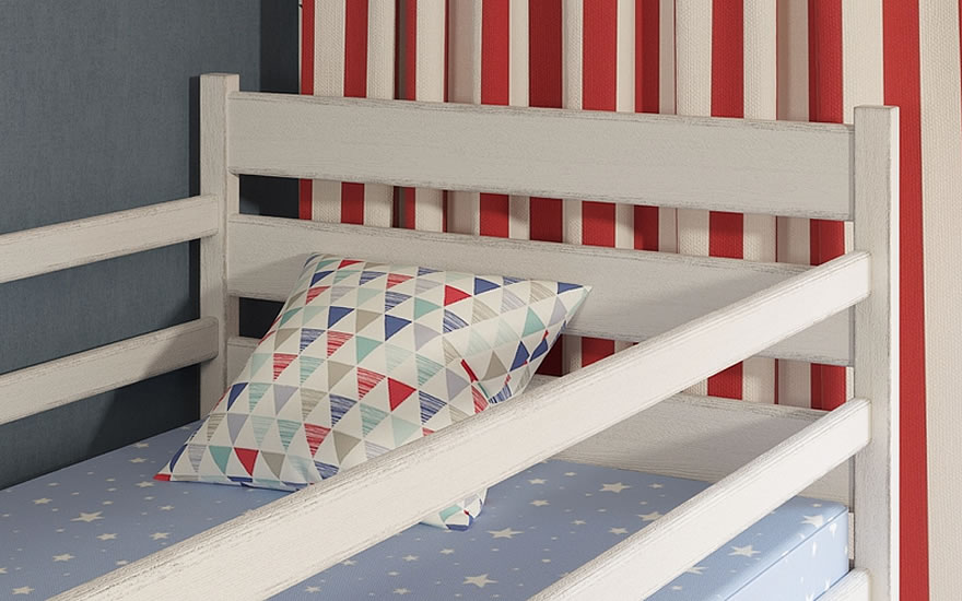 Виготовлене ​​ліжко з натурального дерева - масиву сосни і покривається екологічним і безпечним  лаком. Широка палітра кольорів дозволить втілити найсміливіші дизайнерські ідеї, а також легко "вписати" ліжко в уже існуючий дизайн.