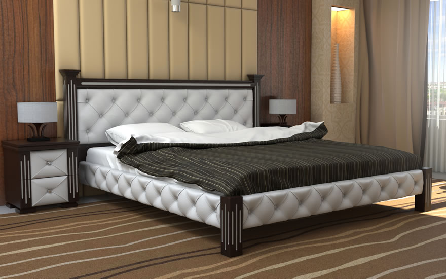 • Ліжко "Олександра" - справжня класика! Ізголів'я і бічні царги в оббивці зі штучної шкіри в поєднанні з дерев'яною окантовкою і ніжками строгих, чітких ліній виглядають чудово і не залишать байдужими справжніх цінителів стилю і якості!