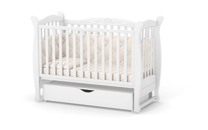 Характеристики Ліжечко дитяче ЛД-15 поперечний маятник з шухлядою (колір білий)