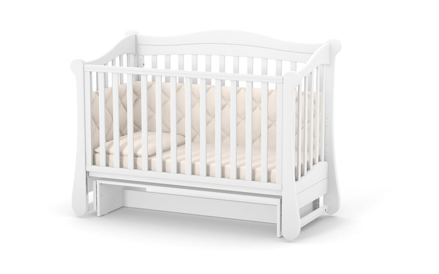 Механізм заколисування (маятник поперечний) як і ящик для білизни не входять в базовий комплект ліжечка, — ці опції можна придбати окремо.