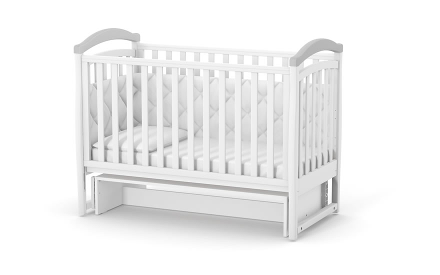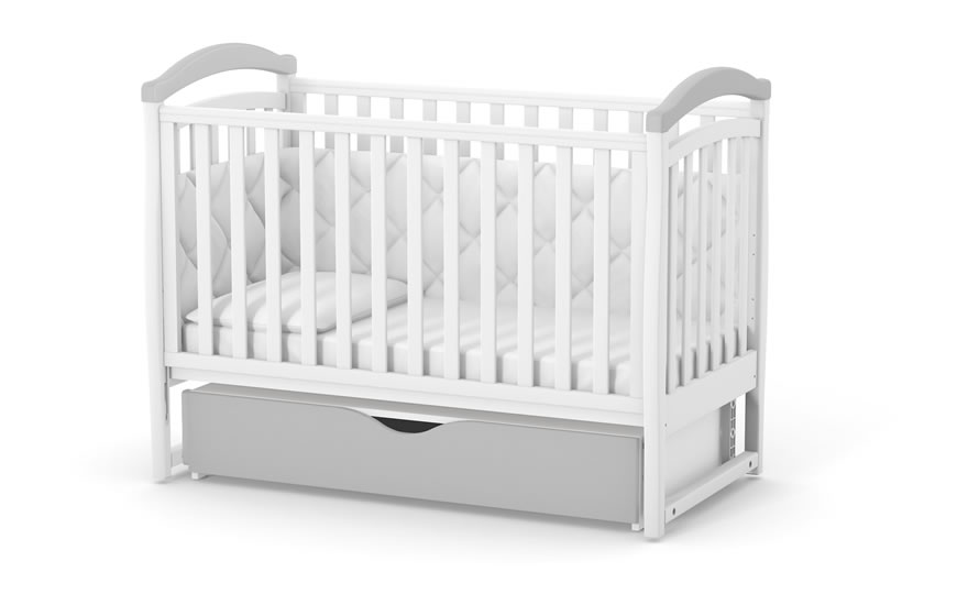 • Ліжечко дитяче ЛД-6 поперечний маятник з шухлядою (колір біло-сірий)