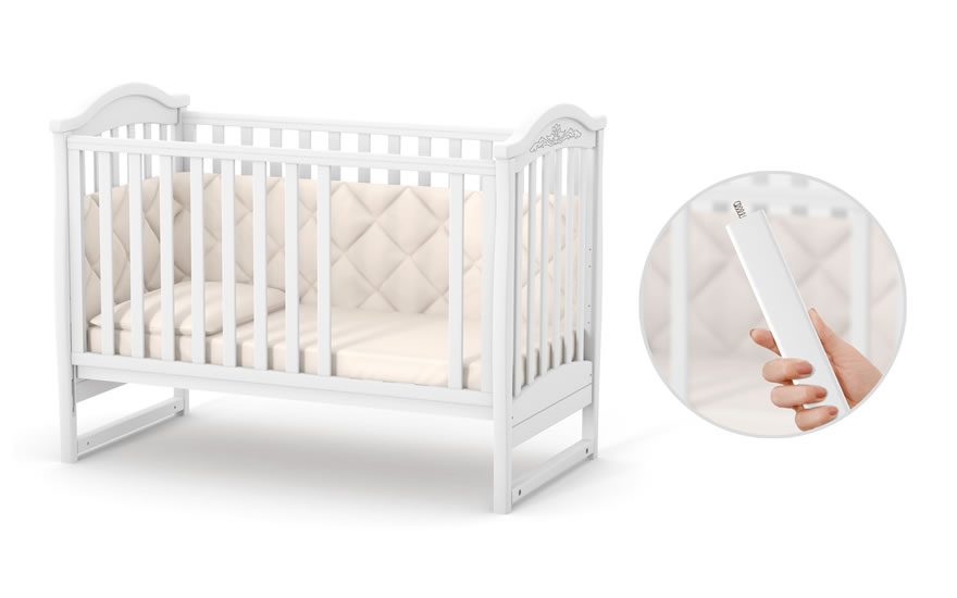 • Наявність знімних спиць: коли дитина підросте — зможе самостійно залишати й повертатися в ліжечко через отвір, де витягуються спиці.