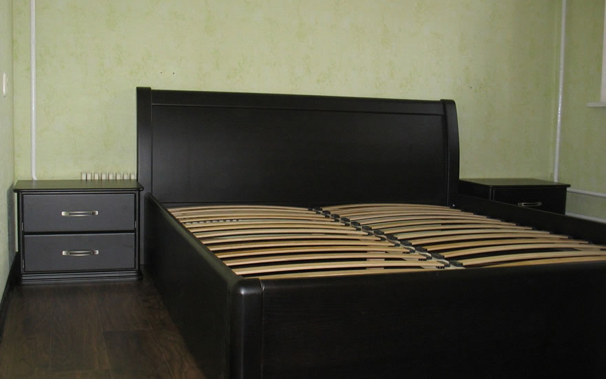 Ліжко виготовлено з натурального дерева: каркас, узголів'я і узніжжя - з масиву дуба+ДСП (шпон)