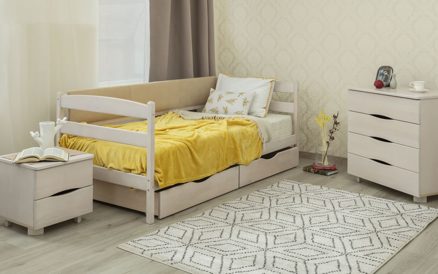 Фабрика виробник ліжок із дерева з мякою спинкою Woodsoft