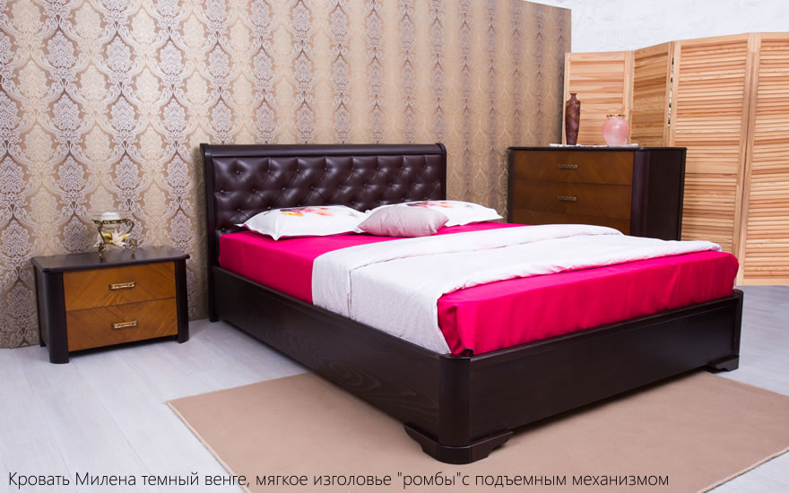 Вкажіть номер телефону і ми Вам зателефонуємо.Характеристики Ліжко Мілена з м’якою спинкою ромби і механізмом Бук