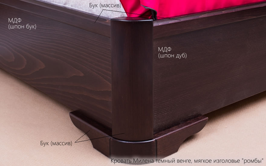 В живую кровать смотрится намного "вкусней" и богаче. Плотно набитое изголовье. Мы заказали в цвете орех + бежевый кожзам. Кровать смотрится очень массивно, скругленные углы ножек и практично и красиво. Единственное, что рама механизма из дерева не выглядит очень надежной, как говорится на века, но если не пользоваться по несколько раз в день, то ничего страшного.