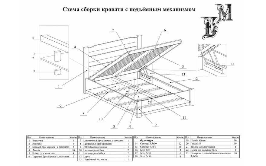 • Характеристики Ліжко-тахта Адель з підйомним механізмом