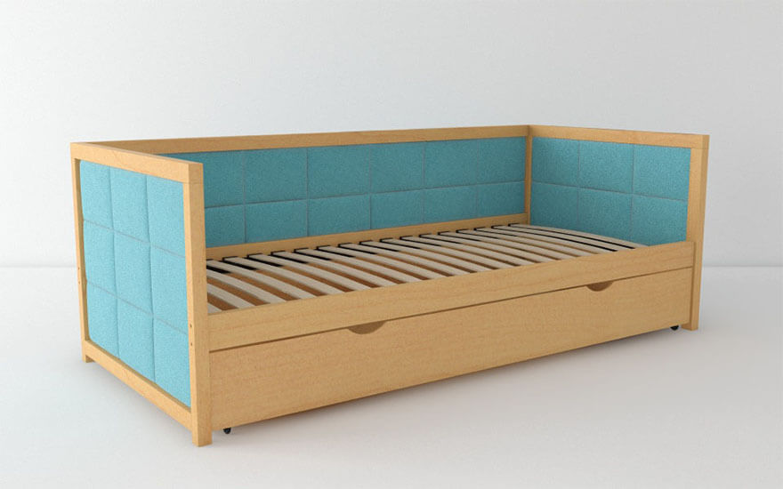 Фабрика виробник ліжок із дерева з мякою спинкою Woodsoft
