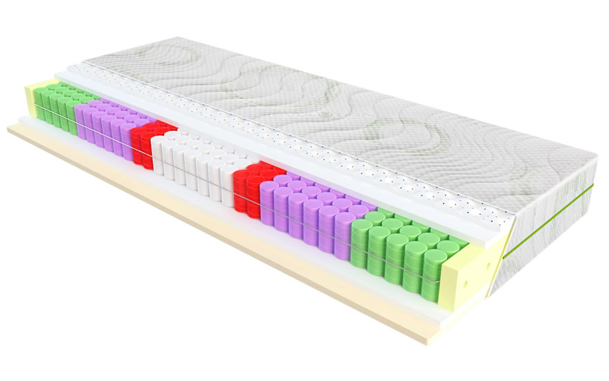 Система пружин Anatomic Multy Zone 7 Багаторівнева інноваційна система пружин Anatomic Multy Zone 7 розроблена за принципом регулювання жорсткості за рахунок стиснення пружин різної висоти. Створюване в пружинах напруга забезпечує різну жорсткість і пружність в заданих зонах. Зональний розподіл пружин забезпечує надійну підтримку і найкращі анатомічні властивості матраца. |