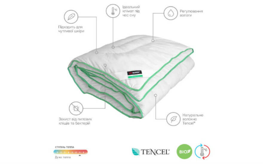 Наповнювач: 50% натуральне волокно Тенцель®, 50% нанофайбер (Австрія)
