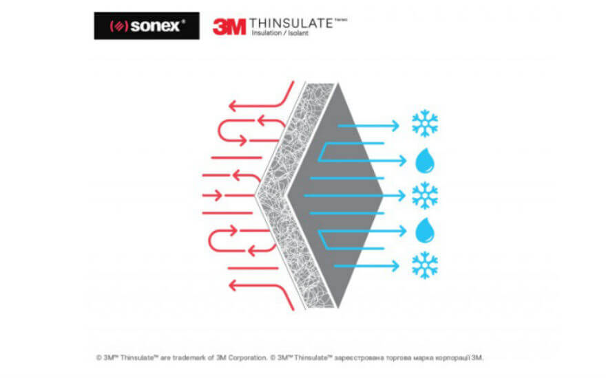 • Thinsulate ™ - екологічно чистий і гіпоалергенний матеріал, створений американською компанією ЗМ. Унікальна технологія виробництва утеплювачів «Тепло без зайвого обсягу ™» дозволила отримати матеріал, який по ефективності і якості перевершив всі відомі досі на світовому ринку теплозахисні матеріали.