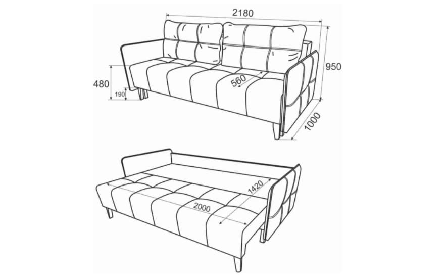У конструкції використовується крокуючий принцип: при трансформації передня подушка рухається вперед, а задня автоматично піднімається. Спинка дивана залишається нерухомою, як узголів'я повноцінного ліжка. Просцес розкладки не займе більше 3-х секунд.