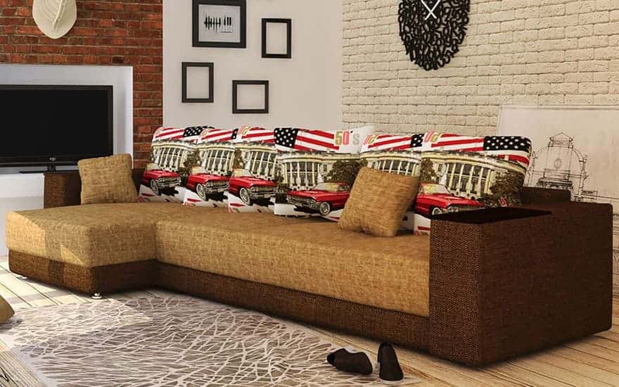 У комплектацію дивана входить 6 подушок для спини + 2 декоративні подушки.