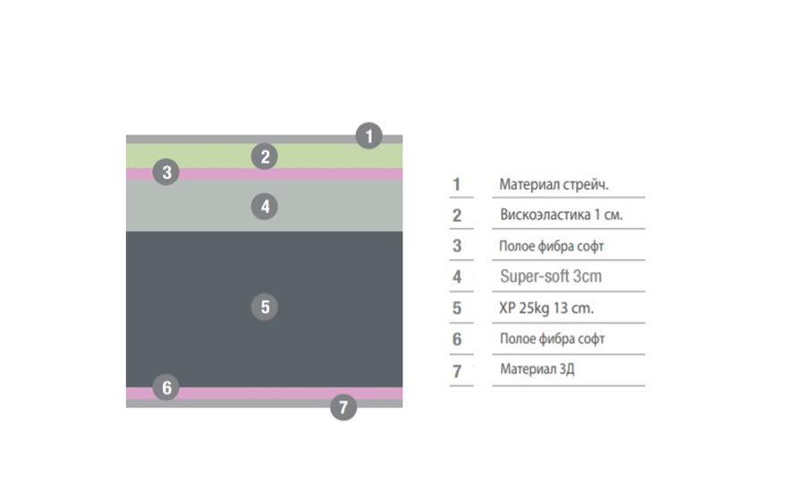Порожнє фібра софт матеріал складається з безлічі вісокоеластічніх пустототелих волокон, які забезпечують постійну циркуляцію повітря, регулювання термобаланс і вирівнювання перепадів температур під час сну. Завдяки цьому, досягається ідеальний мікроклімат на поверхні матраца.